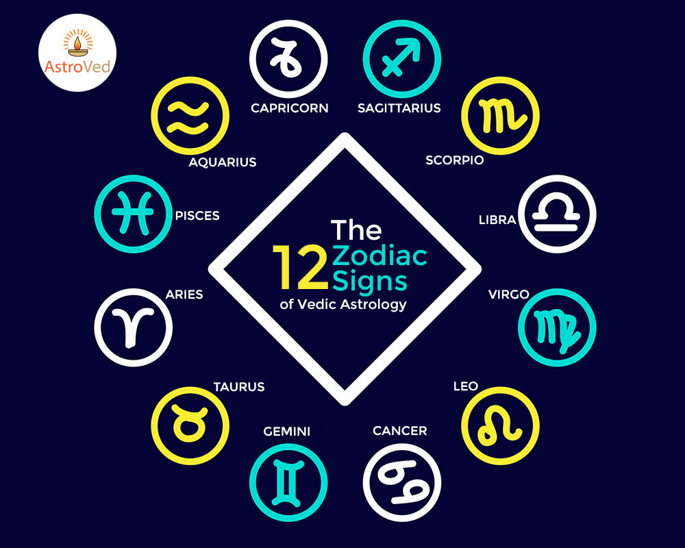 12 Zodiac signs of astrology and their significance In Vedic astrology, the orbit of the planets is divided equally into 12 parts of 30 degrees each. Each part is called a sign and they are Aries, Taurus, Gemini, Cancer, Leo, Virgo, Libra, Scorpio, Capricorn, Aquarius...